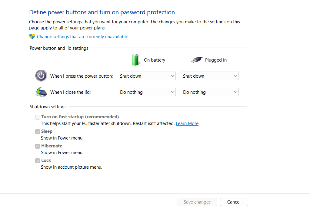 6 - Windows güç seçenekleri, güç düğmesinin ne yapacağını seçe geliniz ve hızlı başlatmayı kapatınız. Ayrıca burada laptop kapağını kapatınca ne yapacağı sizde uyku modudur ama hazırda beklet veya hibernate modu uyku modundan daha iyi bir seçenektir ama Windows'a girmesi daha uzun sürer. Daha az güç harcar. Ben olsam onu kullanırdım.
