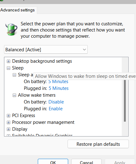 7 - güç seçeneklerini düzenleye gelin ve allow wake timersı on batteryde devre dışı bırakın. (türkçesini bilmiyorum, PCI Express'in üstünde ve uyku kategorisinin 2. seçeneği.
