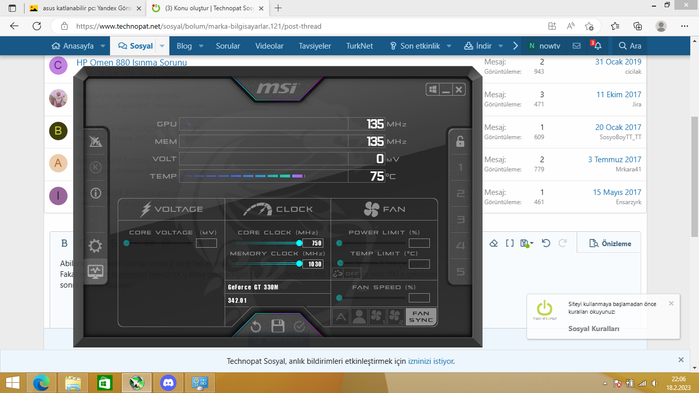 Abilerim, ablalarım Laptop'umda 2 tane fan ek olarak altında 6 tane fan çalıştırmaktayım toplan 8 fan çalışıyor. Fakat MSI Afterburner'den Overclock'u sona çekmediğim sürece ısı derecesi 100'lere ulaşıyor onu 100'e çektikten sonra 80'lere düşüyor boştayken bile 70-80 arası derece gidiyor. Super mario bile girsem derece 90'larda geziyor normal mi? Bir de bir sorum olacak termal macunum galiba 10 yıldır yenilenmiyor bundan mı kaynaklı? Ve GHz sabitlenme sorunu var bakarsanız sevinirim.