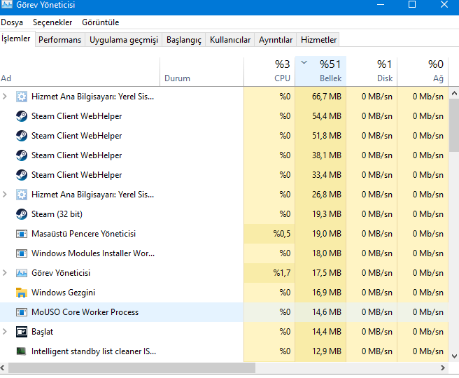 Ek olarak masaüstü bilgisayarımda da 4 GB RAM bulunmakta boşta iken %30 kullanılıyor.