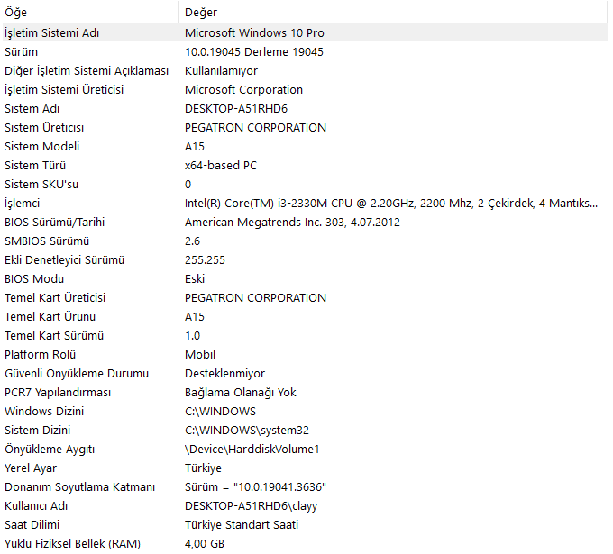 Bilgisayarım Casper Intel i3 işlemci. Pagetron A15 ekran kartı kısacası böyle.