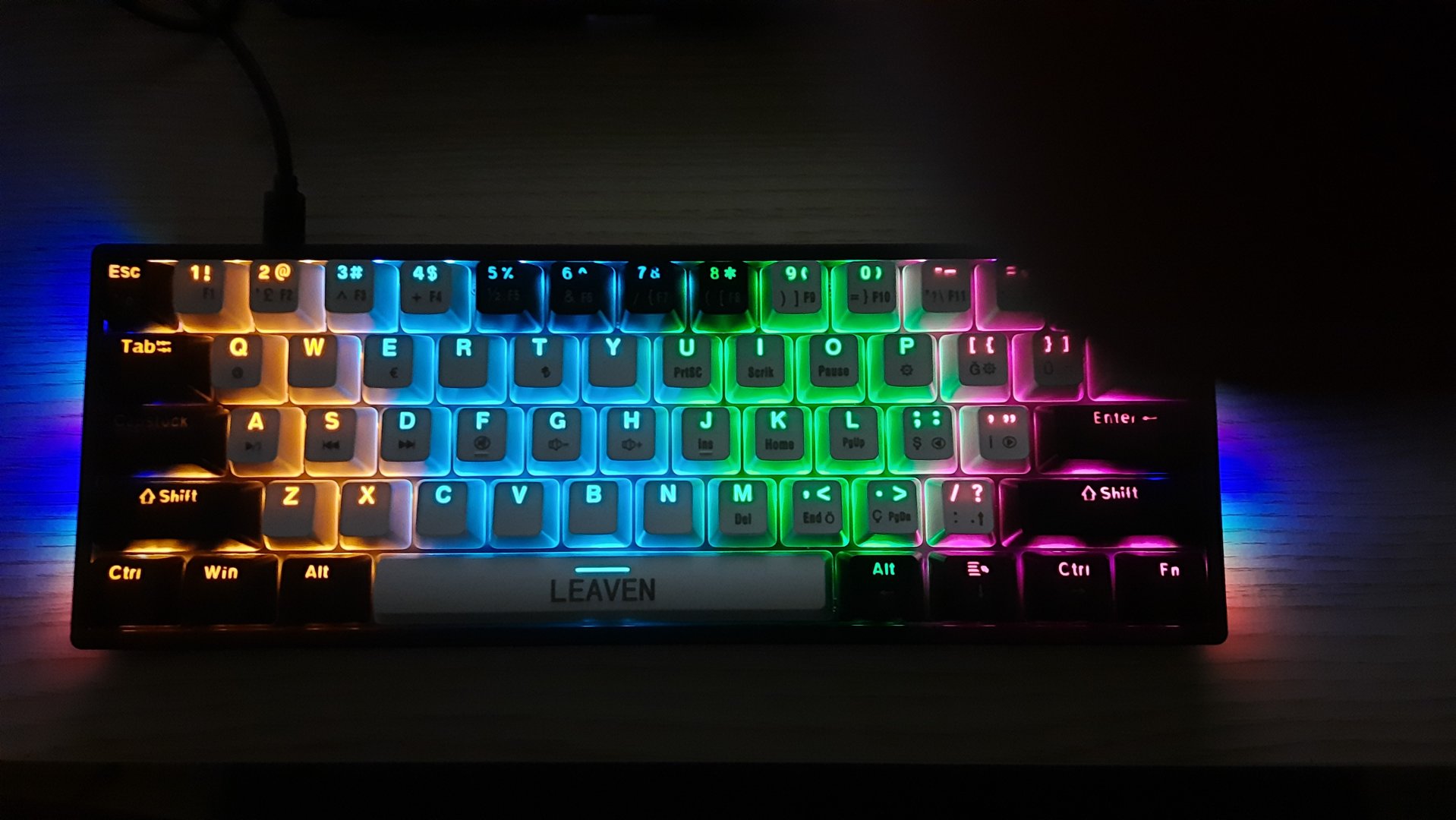Hocam konuyu hortlatmış olacağım sanırım ama hala kullanıyor musunuz? Memnun musunuz üründen? Attığınız fotoğrafta Caps tuşu yanmıyor gibi görünmüş ama ışıklarında problem var mı? Birde ben klavyeyi RGB olarak gördüm ama rainbow mu? %60 klavye almayı düşünüyorum ama kararsız kaldım yardımcı olabilir misiniz?