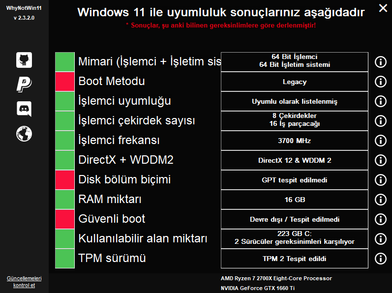 Hocalarım, ben bu sistemle yükseltme şeklinde Windows 11'e geçebilir miyim? Çünkü disk bölüm biçimi GPT değil. Yoksa temiz kurulum mu yapmam gerekiyor?