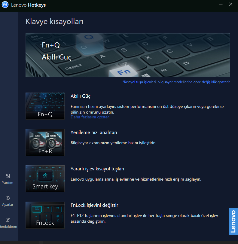 Lenovo Hotkeys - Lenovo ürünlerinde klavye fonksiyonu değiştiren program.