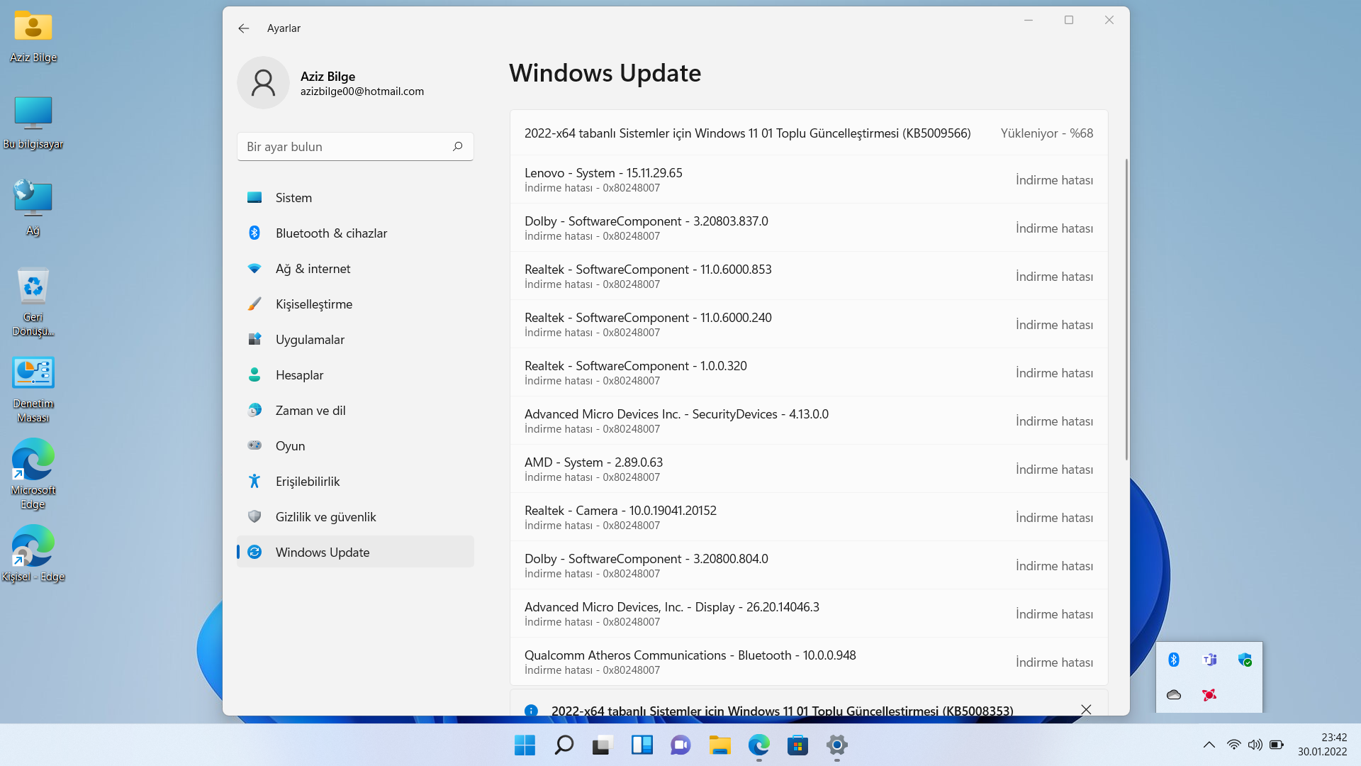 arkadaşlar driverları windows update ile yüklemek istedim. Galiba hepsinde indirme hatası verdi sebebi nedir acaba elle mi güncellemem gerek ?
