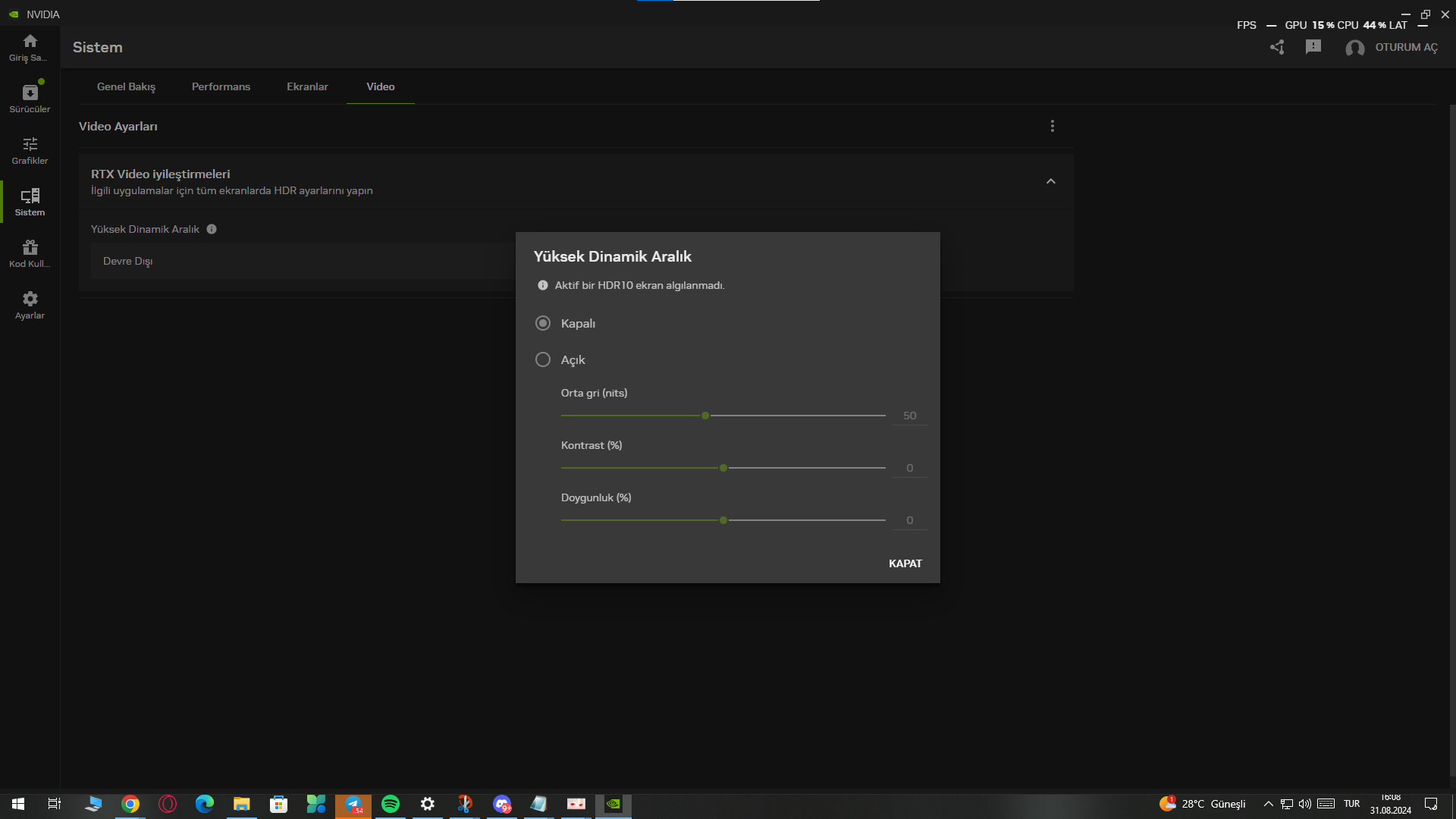 1 hafta önce aldığım LG24GN65R-B monitörde NVIDIA uygulamasından HDR açamıyorum. Windows'un HDR kötü olduğundan kullanmıyorum. Sorunu nasıl çözebilirim?