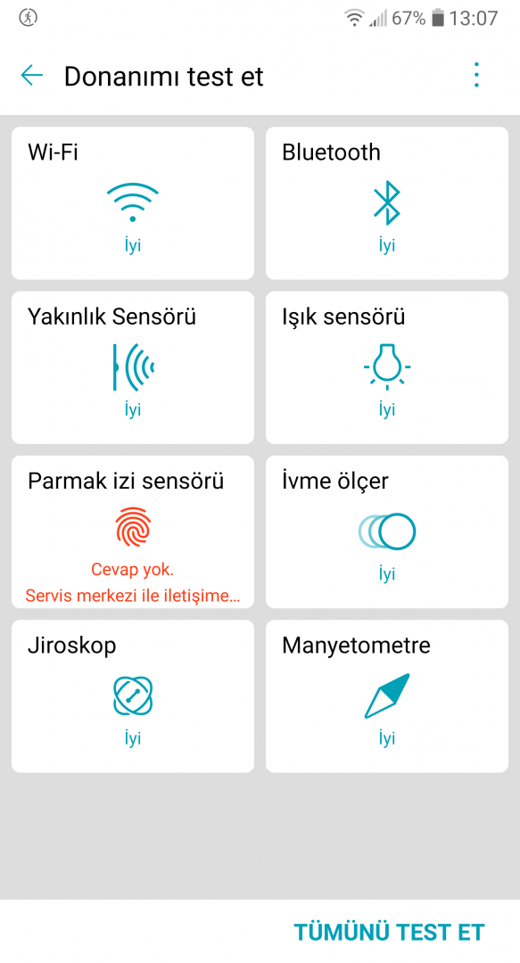 Hocam bende de LG G5 var Smart doctora girdiğinizde donanımı test et yazıyor oradan parmak izini seçip donanımı test eder misiniz?