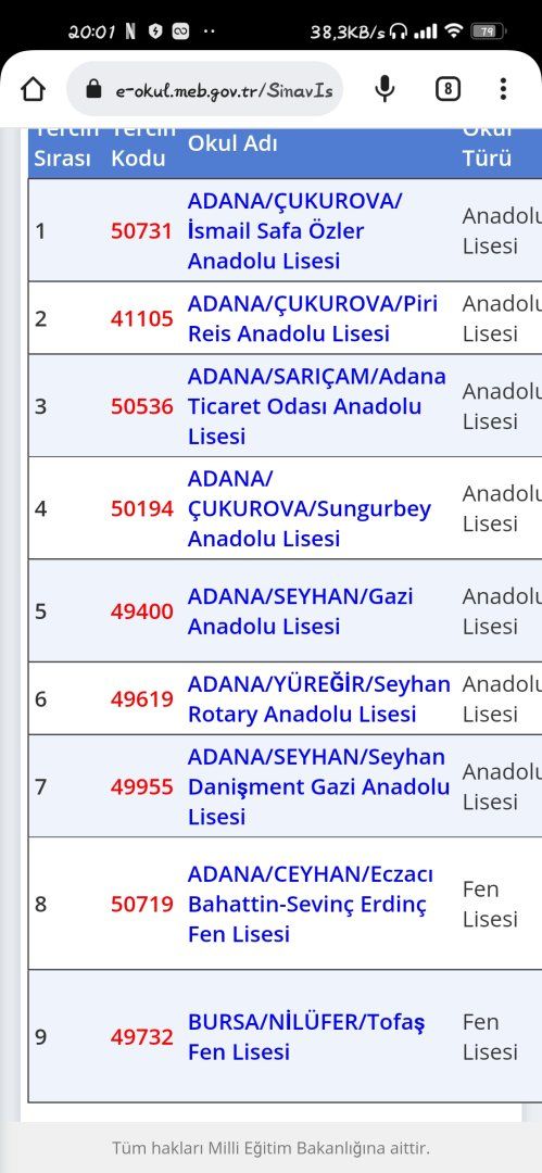 Arkadaşlar, LGS tercihleri 25 Temmuz'da açıklanıyor. Benim yüzdeliğim 6.58 geldi. Ben de Adana'nın şu liselerini yazdım. Hangisi gelir sizce?