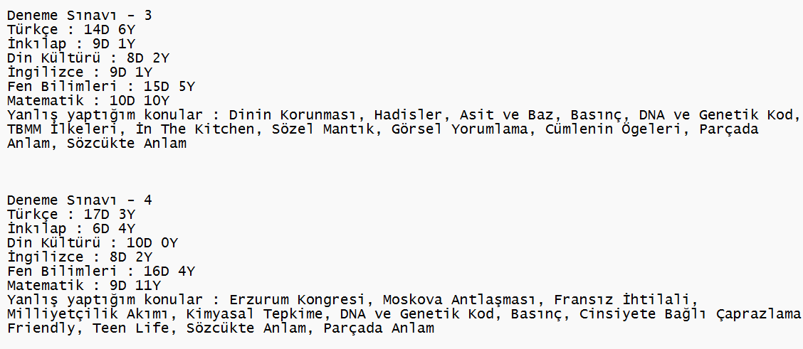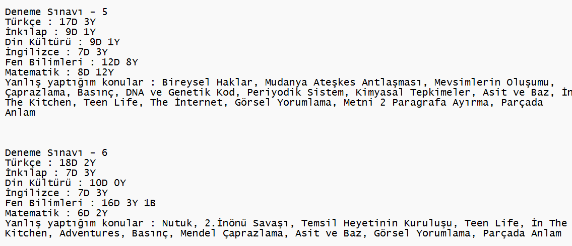 Bunlar arasından aldığınız ilk denemeyi çözün. Yanlış yaptığınız konuları ve soru tarzlarını tespit edin. Onlara 2-3 gün ilk yöntemdeki gibi çalışın.