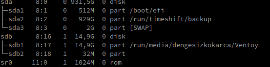 @jiko maalesef. Discord v.s kullanmak istemiyorum ama şöyle yapalım USB takıp "lsblk" çıktısı atabilirsiniz.