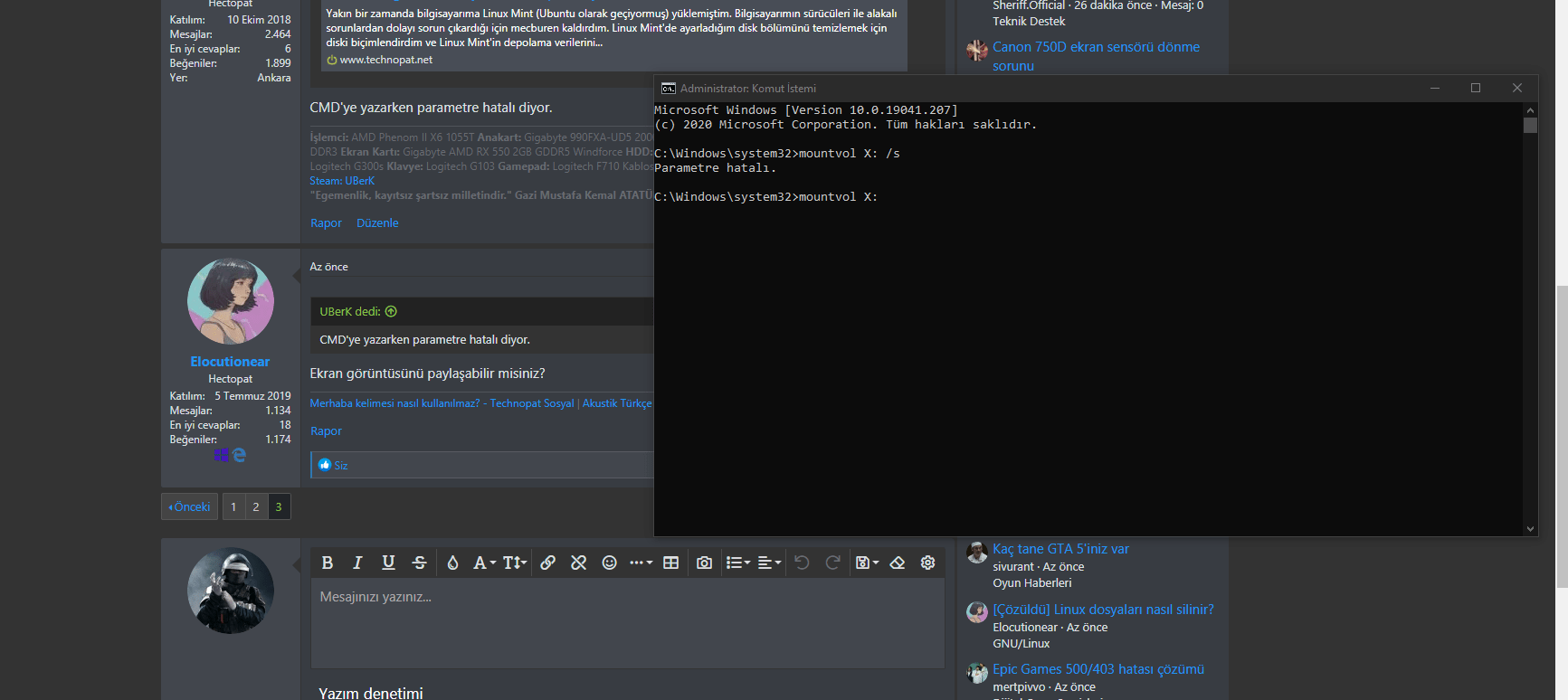 CMD'ye yazarken parametre hatalı diyor.