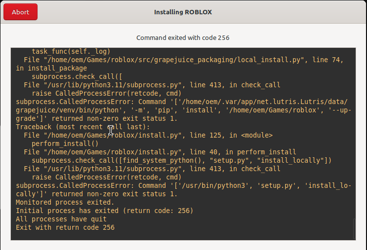 Öncelikle merhaba, geçen ay indirdiğim Linux'ta Roblox oynamak istedim fakat Roblox'un Linux'a verilen desteği kalkmış. Bende Grape Juice, Lutris yazılımlardan denedim fakat olmadı. Öncelikle sıralarsak Grape Juice'de fotoğraf 1'deki gibi hata verdi bende Lutris'ten deneyeyim dedim onda ise 2. resimdeki gibi hata verdi çözümü nedir biri açıklayabilir mi?