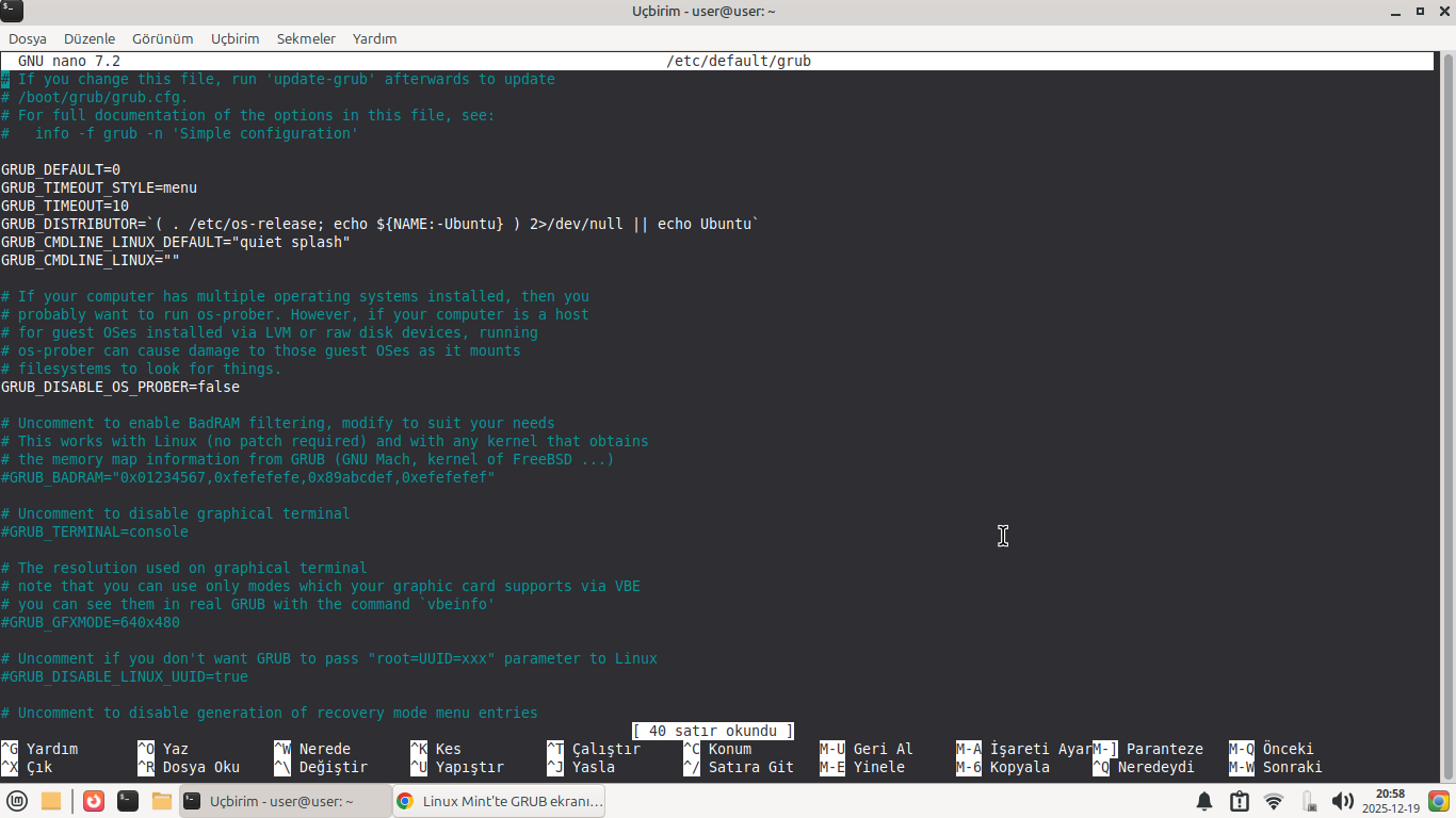 Burada işaretlediğim satırın başındaki # işaretini kaldır. ctrl+X ile kaydet çık.