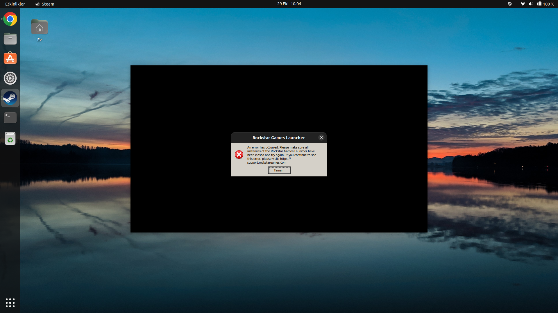 Merhaba, ben zamanında bilgisayarıma Linux Ubuntu kurmuştum. Sonra tabii Windows'a geçmeye çalıştım ama ne yaptıysam işe yaramadı. Bende kabullendim ve kullanmaya başladım. Dün akşam bilgisayarıma uygulama market üzerinden Steam indirdim ve GTA 5 indirdim. Oyunu açtığımda bıraktığım görseldeki gibi bir hata ile karşılaştım. Yardımcı olursanız sevinirim.