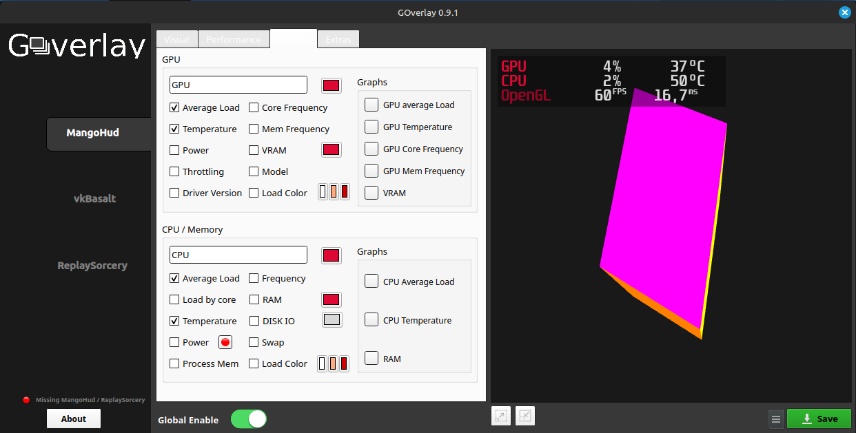 Hocam hepsini indirdim Flatpak'tan ve global ayarı aç dedim. Ancak hala çalışmıyor. FPS'i sınırladım ve CPU derece göstergesini vs. açtım. Oyuna yansımıyor. Yapmam gereken ekstra bir şey var mı? Bu şekilde şu an.