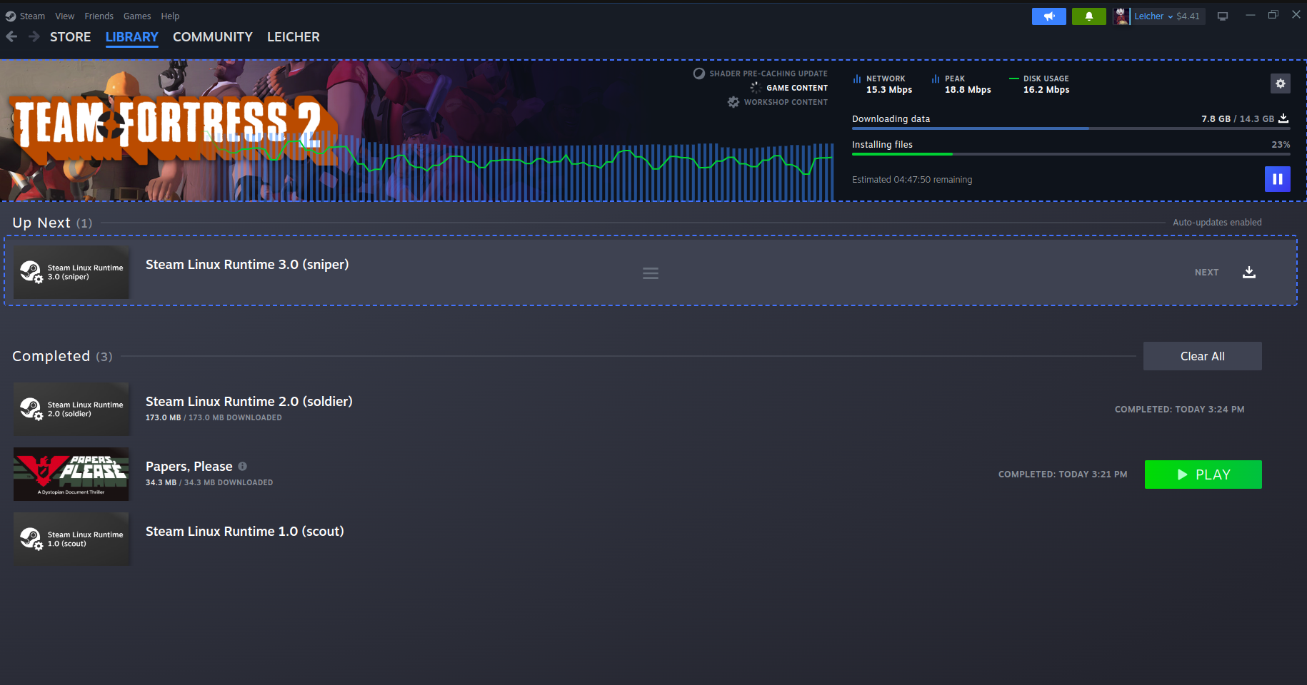 Resimde görüldüğü gibi 5 saat sonra TF2'yi indirecek. Normalde oyunları çok daha hızlı indiririm. Flatpak üzerinden kurduğum Steam'e TF2 indirirken çok yavaş indiğini fark ettim. Bunun sorunu ne olabilir?