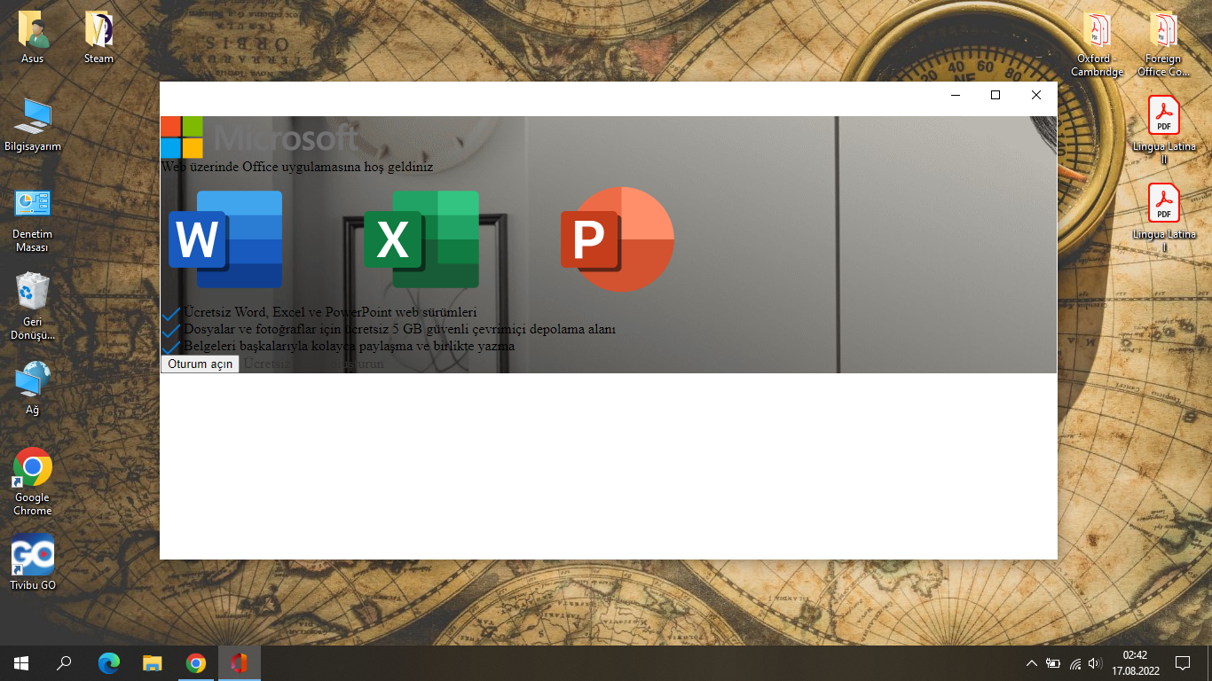 Bu Windows'un kendi uygulaması mı ? Yoksa satın alımdan sonra onu da mı gönderecekler ? Yoksa sistemimde bir adet Office uygulaması var. Ama oturum açmamı istiyor. Hiç yapmamıştım. Oradan mı yapacağım ?