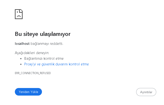 "Localhost bağlanmayı reddetti" hatası