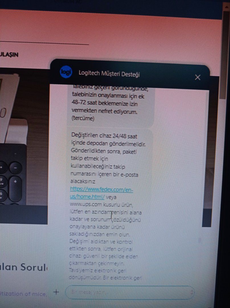 Sizde süreç nasıl işledi, Logitech USB'yi göndereceğiz dedikten sonra UPS Kargo'dan mail almak için yaklaşık kaç gün beklediniz?