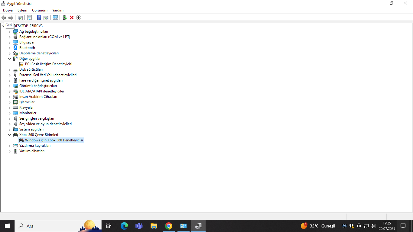 Ekran görüntüsünde gördüğünüz gibi Xbox 360 kontrolcüsü driverini yükledim. Aygıt yöneticisine göre çalışması lazım ancak hiçbir oyunda çalışmıyor, hiçbir program görmüyor. Nasıl düzeltebilirim?