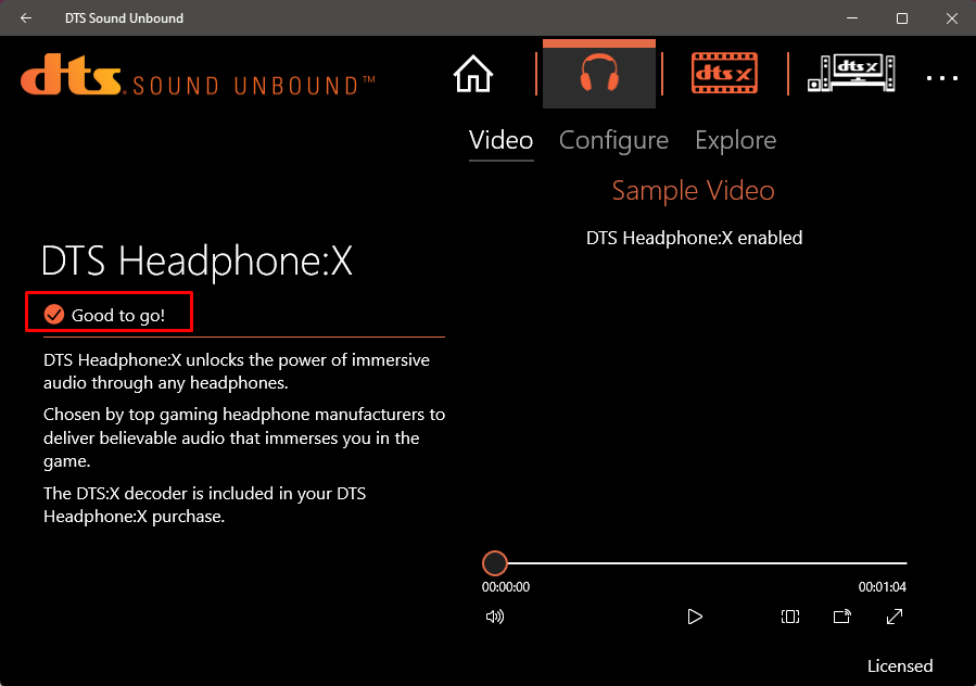 - DTS sound unbound uygulamasına geri gelelim ve.