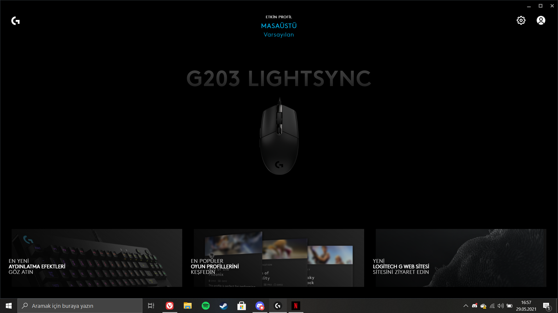 Baktım, hala yok. Ürün %100 orijinal. MediaMarkt'tan alındı ve G HUB uygulamasında da gözükmekte.