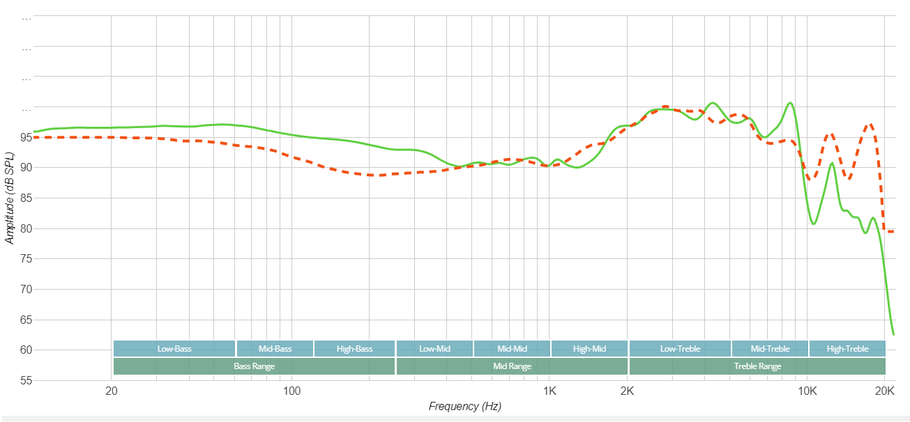 Kulaklığın, rtıngs tarafından ölçülmüş "ham frekans tepkisi" bu şekilde. Bunu kendinize göre peace EQ üzerinden ayarlayabilirsiniz. Hazır bir ayar vermek pek doğru olmaz, çünkü kulaklık öznel bir şey.