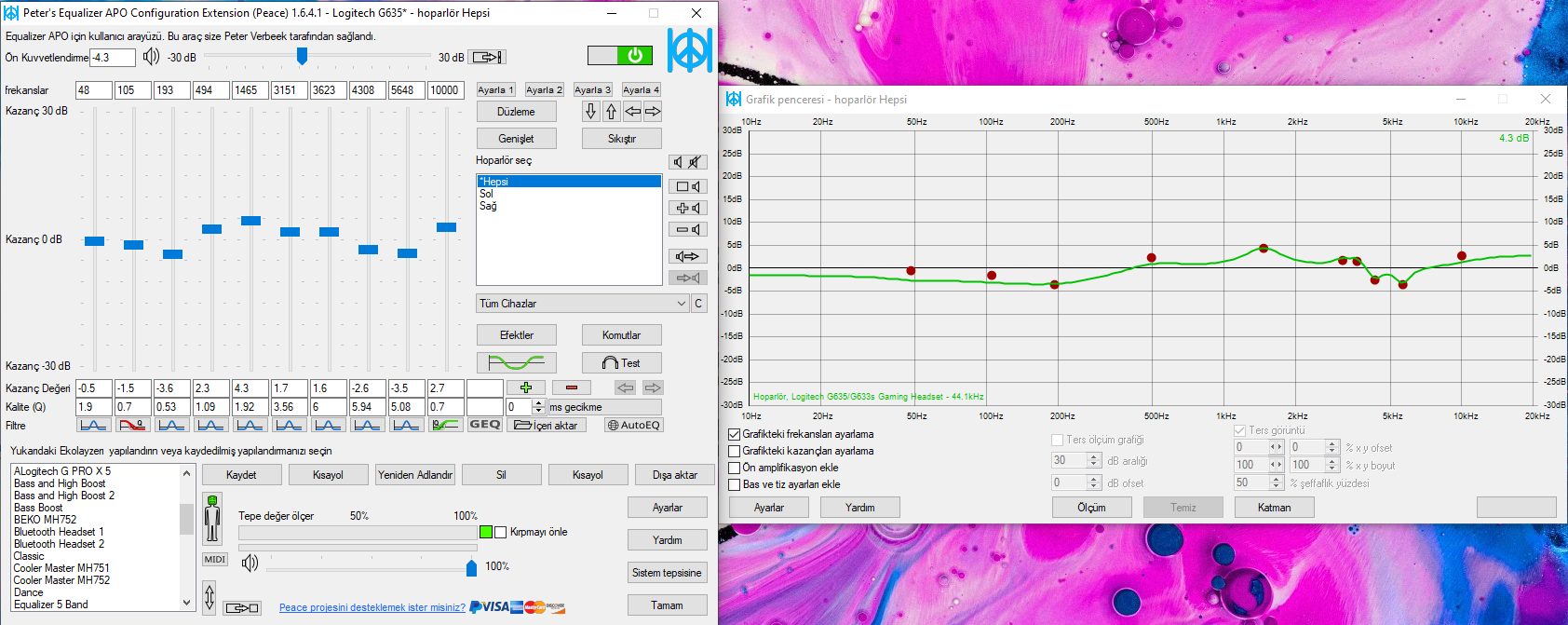 Equalizer apo ve peace EQ indireceksiniz. Peace EQ programı üzerinden yapmanız gerekmekte.