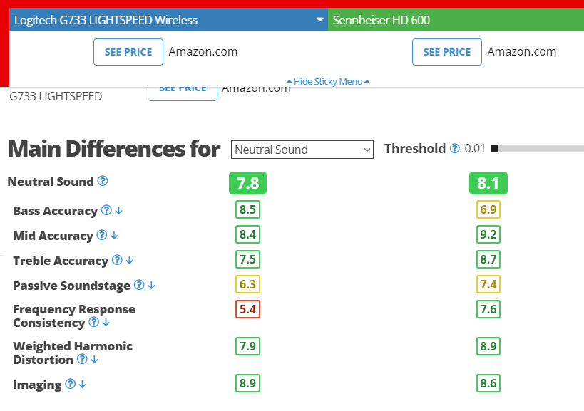 Rtings flat olan grafiğe göre yorumluyor. Utanmasa G733'ün ses kalitesine HD600'den daha iyi diyecekler.