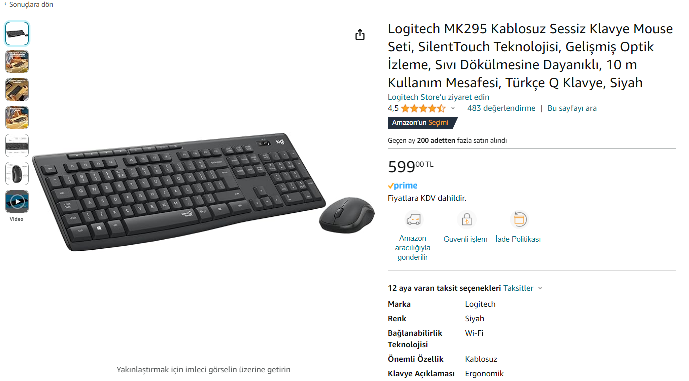 Logitech MK295 benzeri ışıklı klavye var mı?