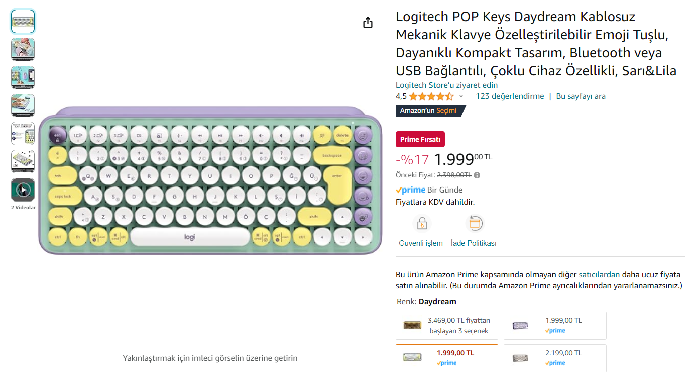 Elektronik Logitech POP Keys Kablosuz Klavye 1999 TL