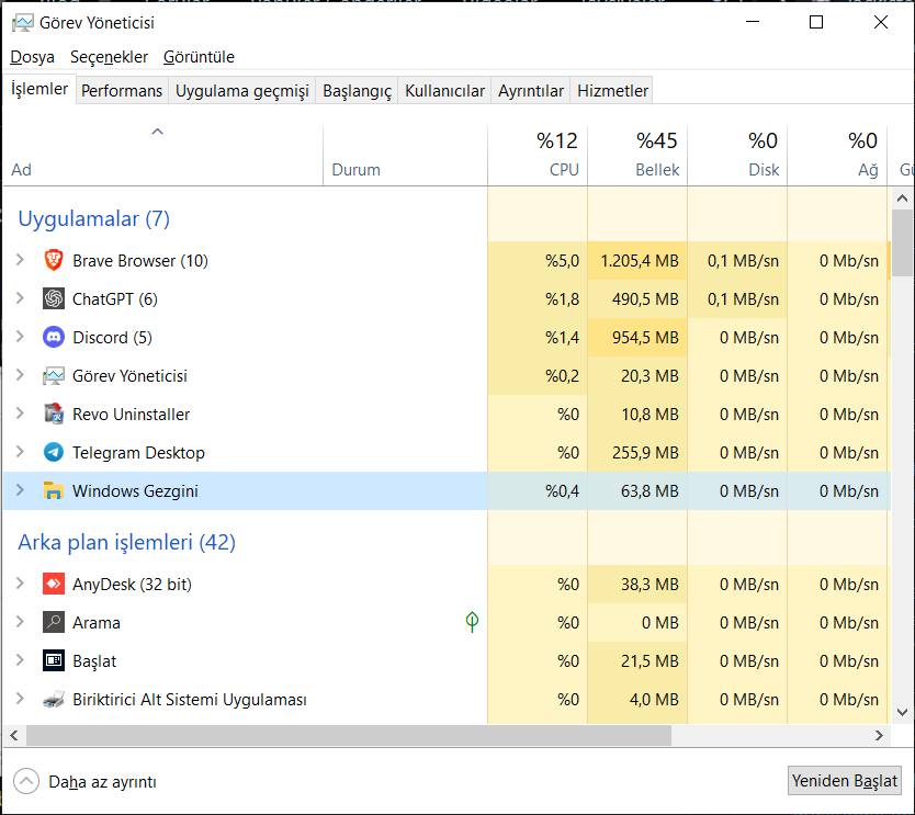 Görev Yöneticisi dediğiniz yöntemi yaptım yaramadı