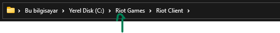 2) klasörün içindeki LeagueClient.exe klasörünün yolunu kopyalama.