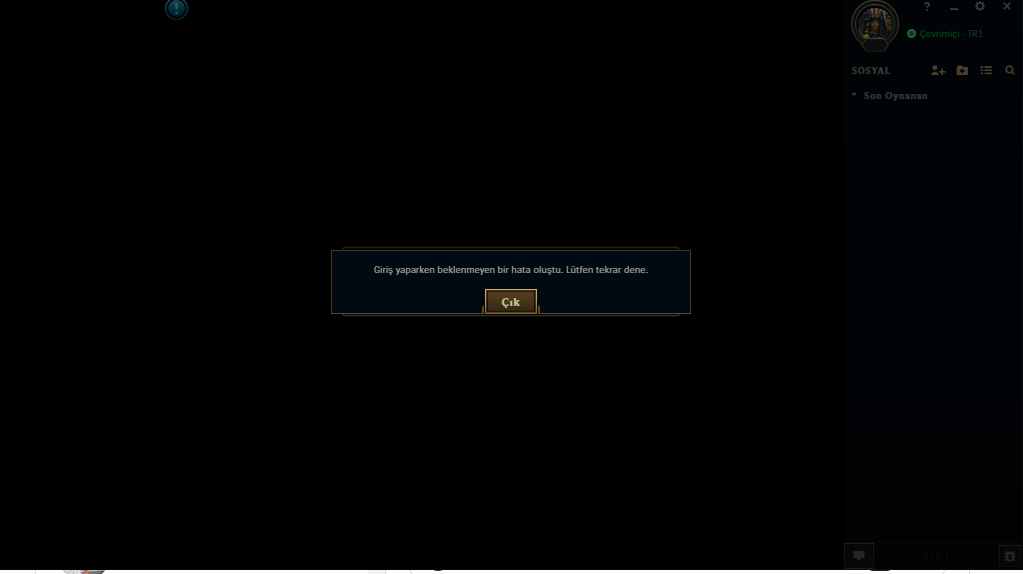 Arkadaşlar merhaba. Bugün LoL'e girmek istedim fakat sabahtan beri şu hatayı alıp duruyorum. Bilgisayarı kapatıp açsam bile düzelmedi. Ne yapmam lazım?