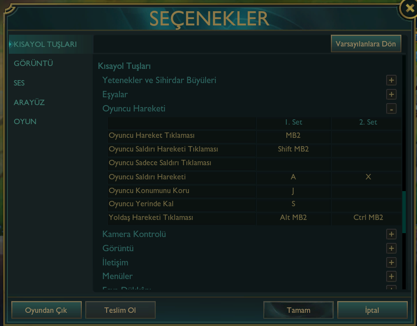 Sorun şu, yeni sezondan önce gayet de iyi yapıyordum A'ya bastığımda oluşan daireden tıkladığım noktanın yakınındaki rakibe vuruyordu ancak şu an eğer tam o rakibe tıklamazsam karakterime en yakındaki rakibe vuruyor. Bu şöyle bir sorun yaratıyor rakiple dövüşürken yanlışlıkla minyona vuruyorsun. Bu eskiden böyle değildi oyuna 2 hafta ara verdim oyunun ayarları mı değişti anlamadım. Ayarlarımı eke bırakıyorum.