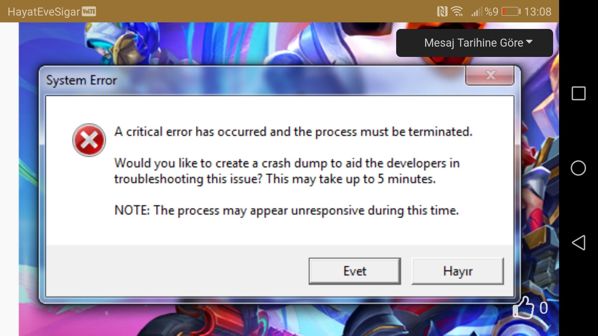 Arkadaşlar tekrar merhaba. 1-2 hafta boyunca iletişim halindeydim LOL TR ile ve bana çift çekirdekli işlemciler artık yetersiz kalıyor dediler. Oyun her geçen gün ağırlaşıyormuş. Yani eski bir sistemim olduğu için bu hatayı alıyormuşum.