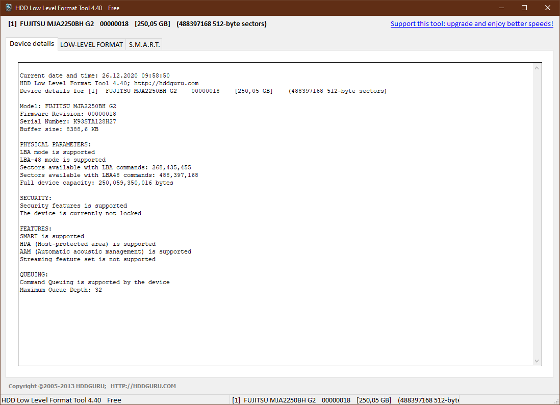 FUJITSU MJA2250BH G2 ve teknik bilgileri hemen aşağıda mevcut.Hard Disk Sentinel - Technical details for disk FUJITSU MJA2250BH