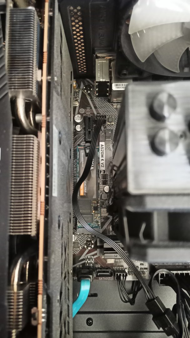 - RX 6700 XT, Ryzen 5 5600, GoodRam 8x2 GB DDR4 3600 MHz, Gigabyte A520 M-K V2, 1 TB Kioxia G2 M.2, 1 TB Seagate Firecuda 120 Sata SSD, Bitfenix Formula Gold 650 Watt, Bitfenix Apollo