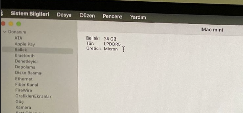 Mac Mini M4 Pro (12 CPU, 16 GPU, 24 GB, 1 TB versiyon) sistem bilgilerinde bellek LPDDR5 görünüyor, herkeste böyle mi yoksa bizim cihaza özel mi? Tüm testlerde ve web'de LPDDR5X olduğu yazıyor, bilgisi ve teyit imkanı olanlar yazabilir mi?