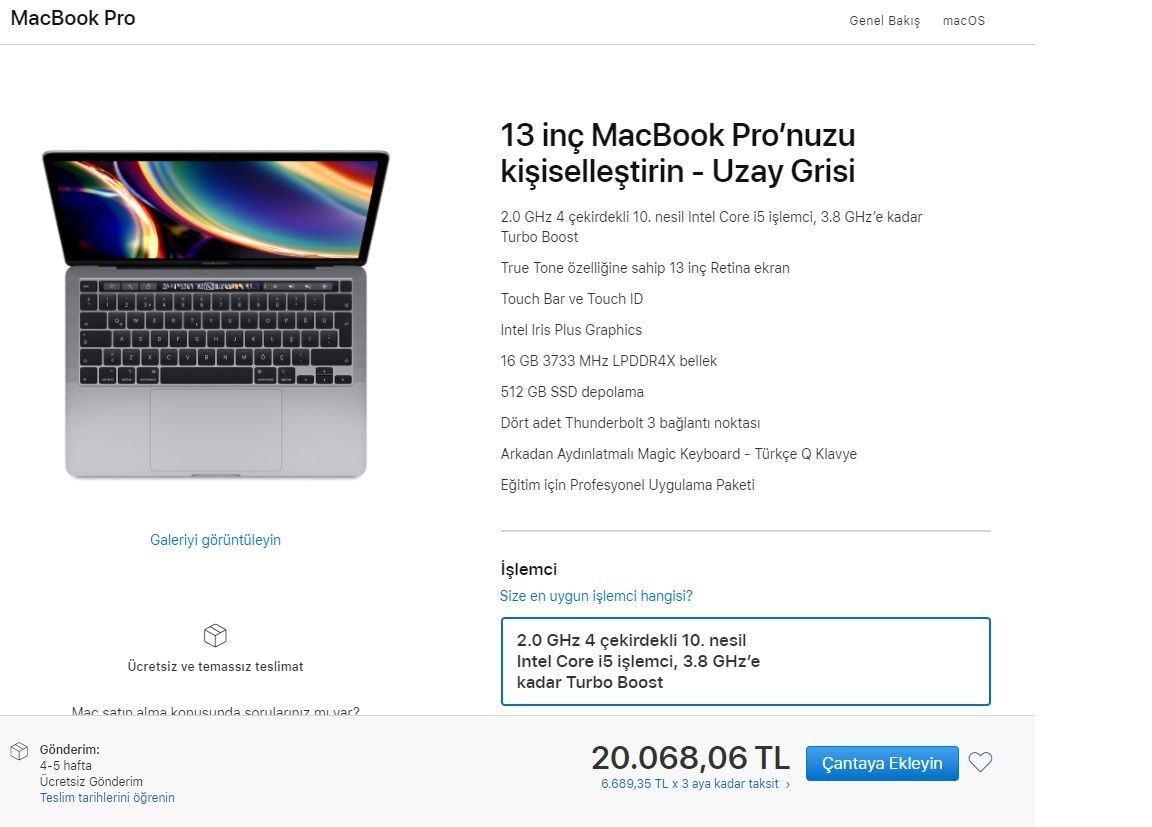 1- MacBook Pro 13 =10.nesil Intel i5 + 16 GB RAM+512 GB SSD+ AirPods (Sipariş verdiğim bu ve şuan tedarik aşamasında)