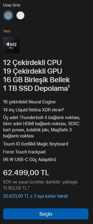 10 çekirdek CPU, 16 çekirdek GPU, 16 RAM, 1 TB SSD 50.7k TL vs 12 çekirdek CPU, 19 çekirdek GPU, 16 RAM, 512 GB SSD 53k TL