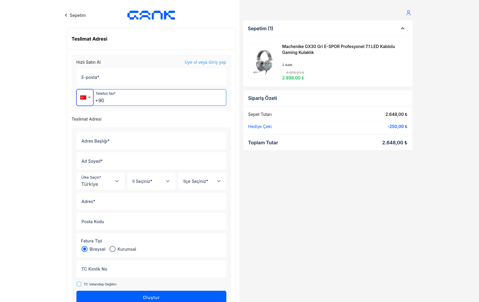 1. Kulaklık için ; Machenike GX30 Gri Kablolu Gaming Kulaklık | GANK 1199TL'ye Düşüyor 250TL indirim kodu ile