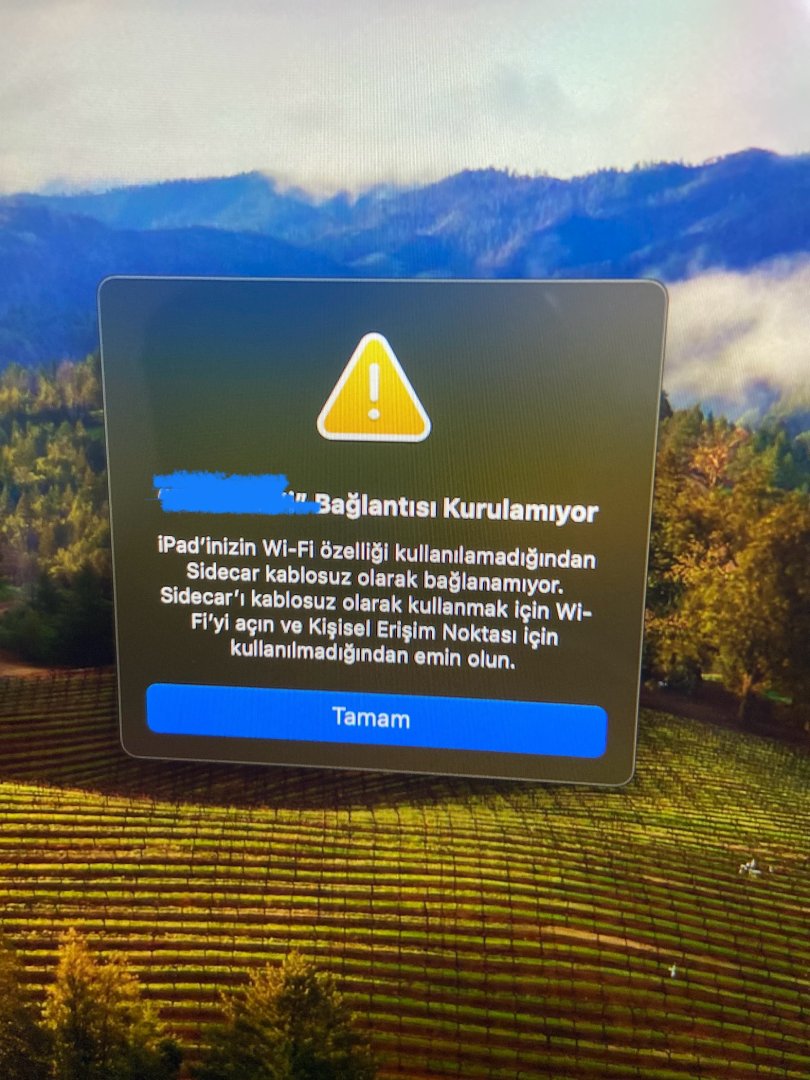 Arkadaşlar MacBook'un sidecar özelliği ile IPad'imi ikinci ekran olarak kullanmak istiyorum. İki cihazımın da yazılımları güncel. Aynı Apple kimliği ile giriş yapıyorum. Fakat her bağlanmak istediğimde fotoğraftaki hatayı alıyorum. Acaba çözümünü bilen var mıdır?
