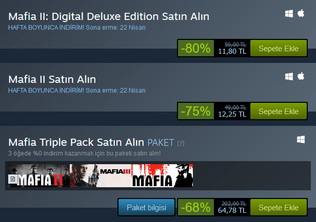 En iyi oyun 1 değil miydi ama? 2'nin yarısını bitirdim ben de. Nedense 1'deki o heyecanı duyamadım bir türlü.Efsaneler efsanesi, Mafia serisinin en iyi oyunu sayabileceğimiz Mafia II %80 indirimde fiyatı ise 11.80 TL kaçırmayın!