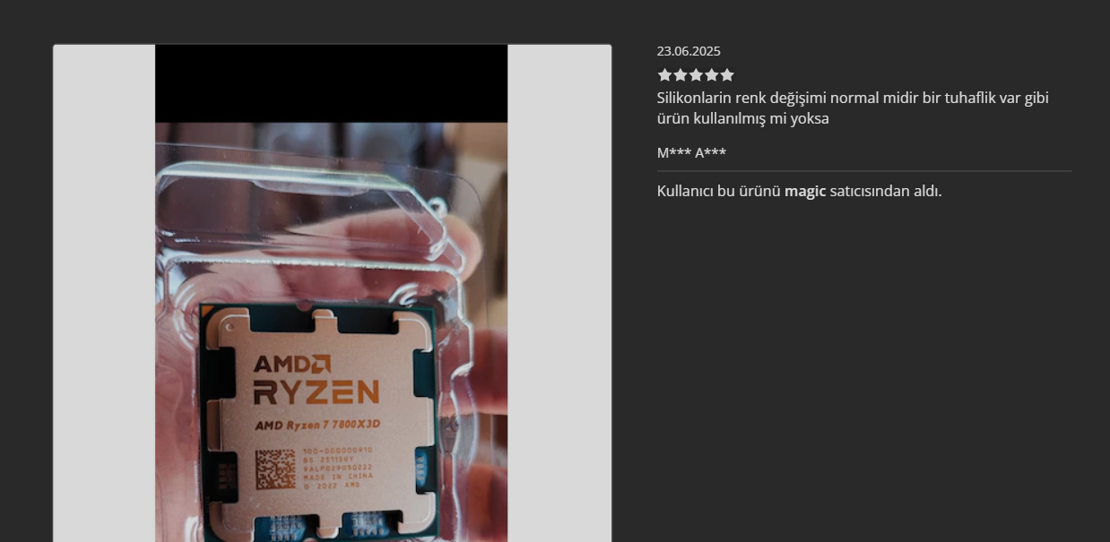 N11 üzerinden magic satıcısından AMD Ryzen 7 7800x3D tray işlemci sipariş vereceğim ama gerek Google yorumları gerekse Şikayetvar yorumları korkunç. Bu satıcıdan daha önce alışveriş yapmış olan arkadaşlar deneyimlerini anlatırsa sevinirim.