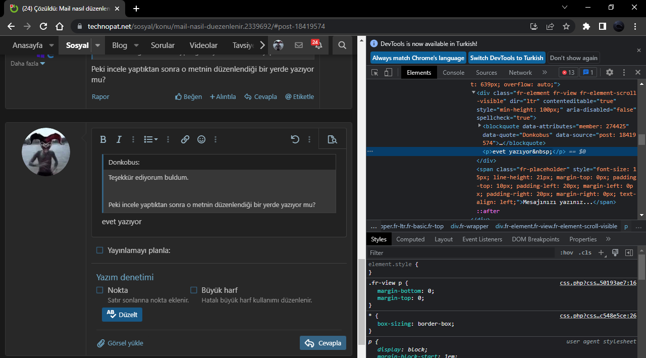 Peki incele yaptıktan sonra o metnin düzenlendiği bir yerde yazıyor mu?Hocam maile girin metini seçip sag tıklayın üstüne incele yapın.