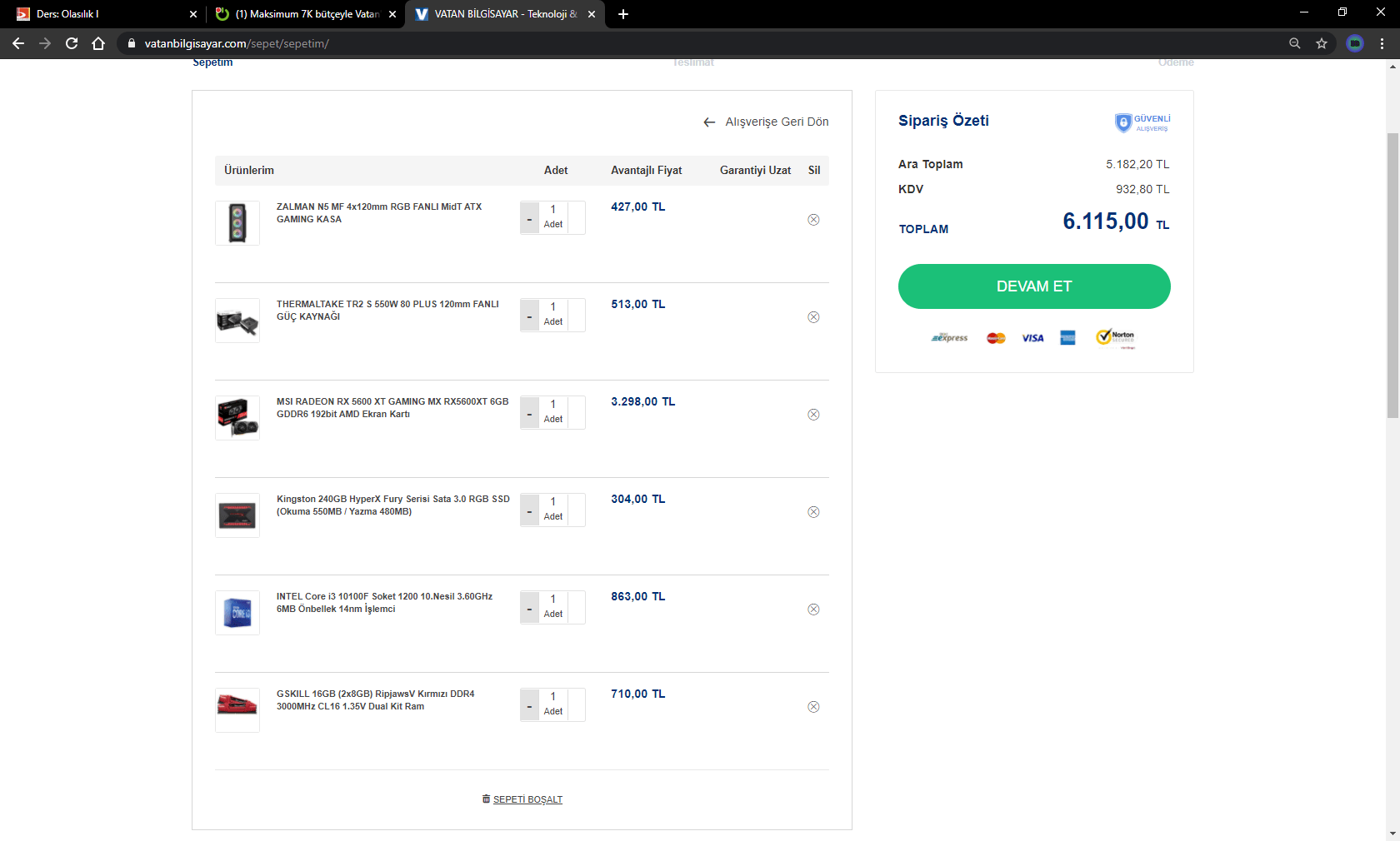 Maksimum 7K bütçeyle Vatan'dan sistem önerisi