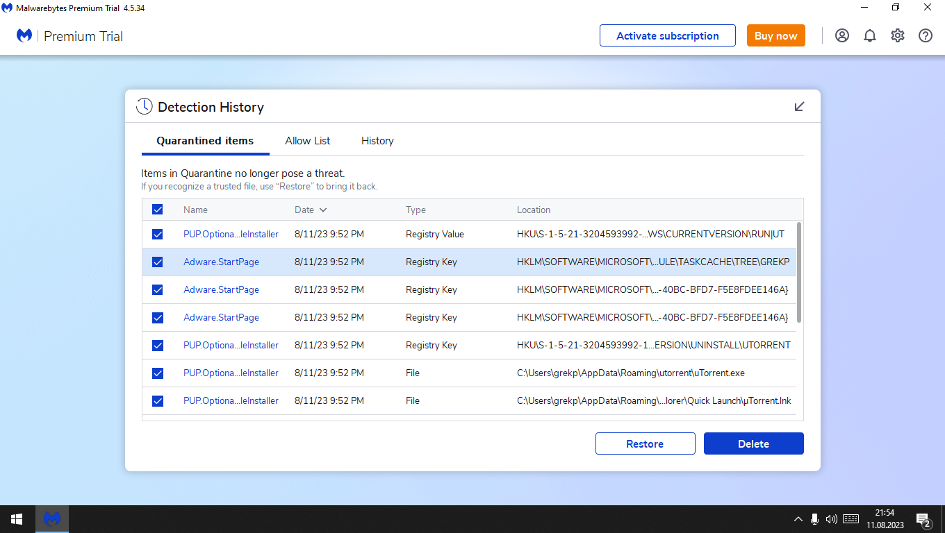 Atıyorum şimdi.Malwarebytes'in virüs bulduğu şeyleri sil sonra o siteyi bana atman lazım çözüm için.
