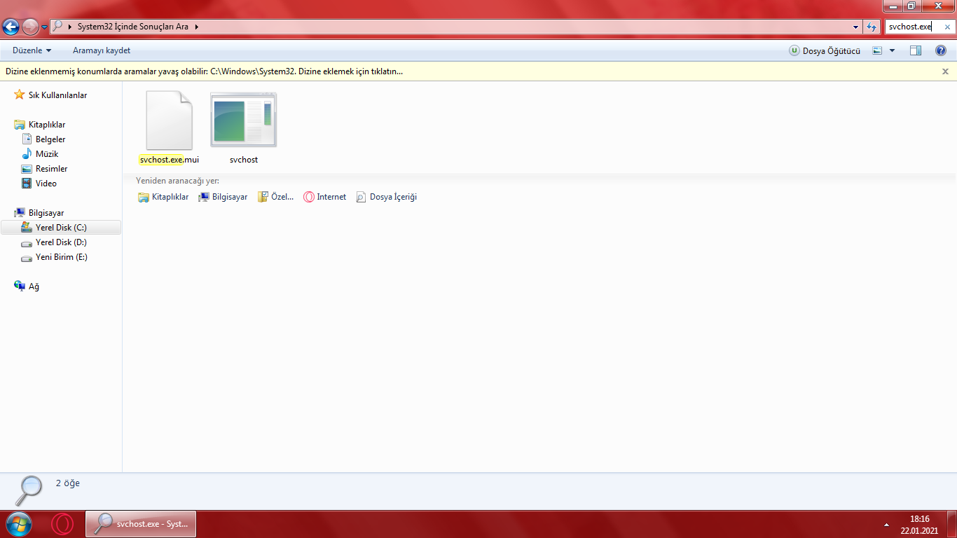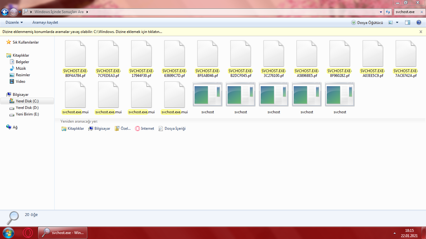 Windows dosyasında svchost.exe olarak arama yapınca bunlar.
