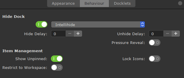 Üstteki panelimizi oluşturduktan sonra geriye kalan bütün panelleri siliniz. Alttaki Dock'u oluşturmak için uygulama menüsüne veya bir terminal'e "plank" yazmanız yeterlidir. Plankin ayarlarını yapmak içinse ctrl tuşuna basılı tutarken sağ tık yapmanız lazımdır. Böylelikle gelen menüde preferences seçeneğini göreceksiniz. Burayı kendi dilediğiniz gibi ayarların, bütün ayarlar gayet anlaşılabilir bir biçimdedir zaten fakat referans olarak kullanmak isterseniz kendi ayarlarımı da buraya bırakıyorum.